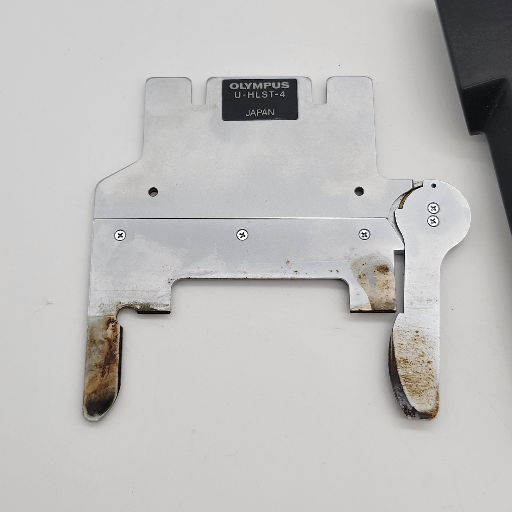 Slide holder is working properly, there is some corrosion/discoloration on the back.